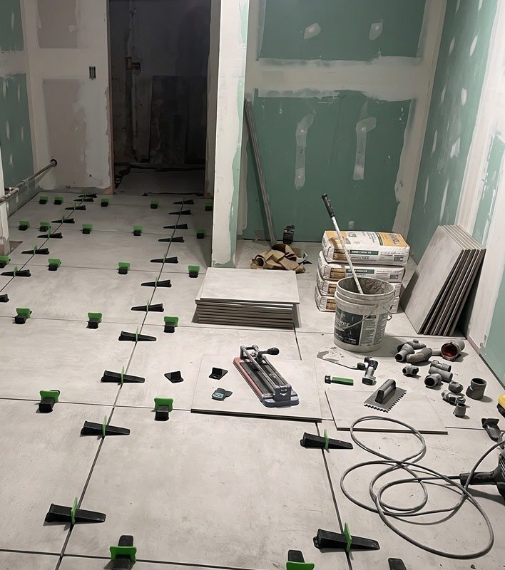 La principale problématique de ce chantier était la configuration atypique de la salle de bain. L’espace présentait des angles non standards et un sol légèrement irrégulier, nécessitant une préparation minutieuse du support avant la pose du carrelage. Il a fallu assurer une parfaite planéité pour éviter toute infiltration d’eau à long terme et garantir la durabilité du revêtement. De plus, l’accès à la pièce était restreint, ce qui a compliqué l’acheminement des matériaux et des outils. Grâce à notre expérience, nous avons su adapter nos techniques de pose et optimiser chaque étape pour un rendu impeccable.